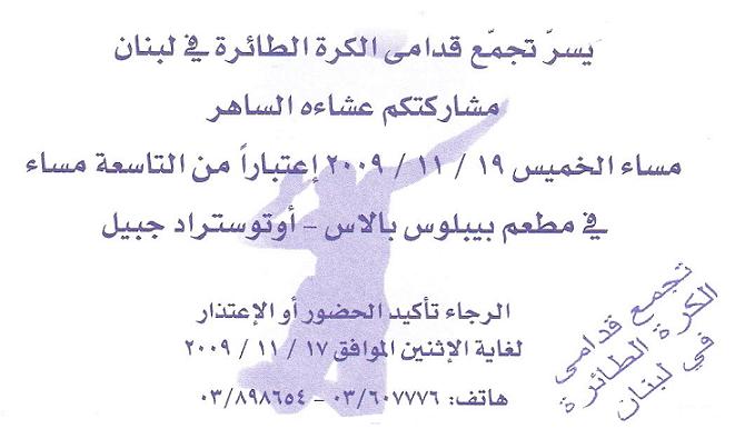 جريدة النهار 05 / 09 / 2009 دورة تجمع قدامى الكرة الطائرة |