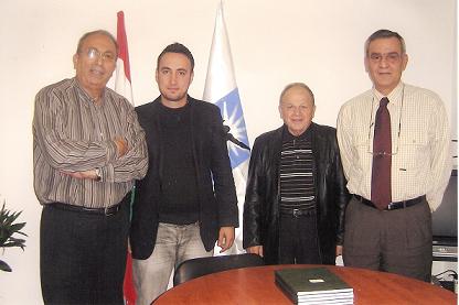 رئيس ونائب الرئيس والامين العام خلال استقبالهم السيد جاك حداد مدير نادي هوكس - بعبدا