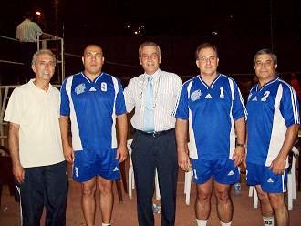 اللاعب المخضرم روبير ميلان وابنه جيسن الاستاذ سمير محاطا بالقدامى سيمون ديب وكميل اشقر وكمال فغالي